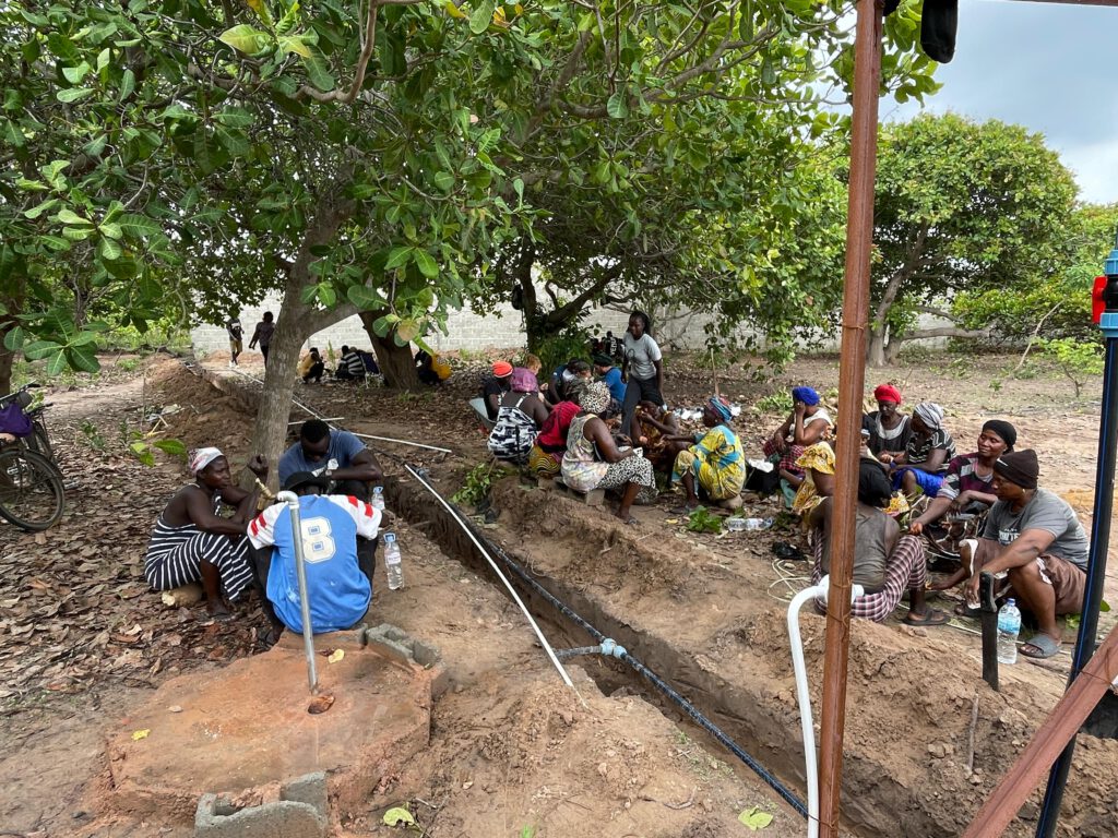 - Also an irrigation system with eight water taps was installed by the team. They supply high quality ground water from the borehole made in March.
